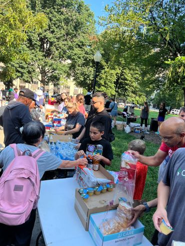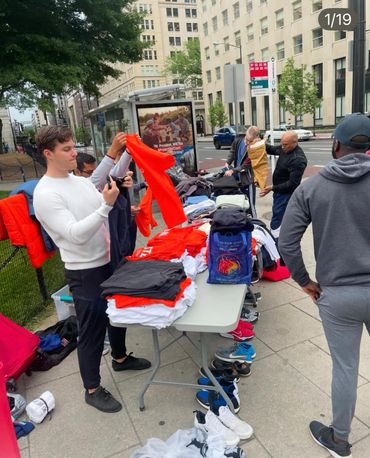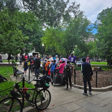 Join us on the third Saturday of every month as we come together to support our neighbors who experience homelessness in Washington, D.C. Our outreach, held in McPherson Square, provides essential aid including food, clothing, toiletries, and services.